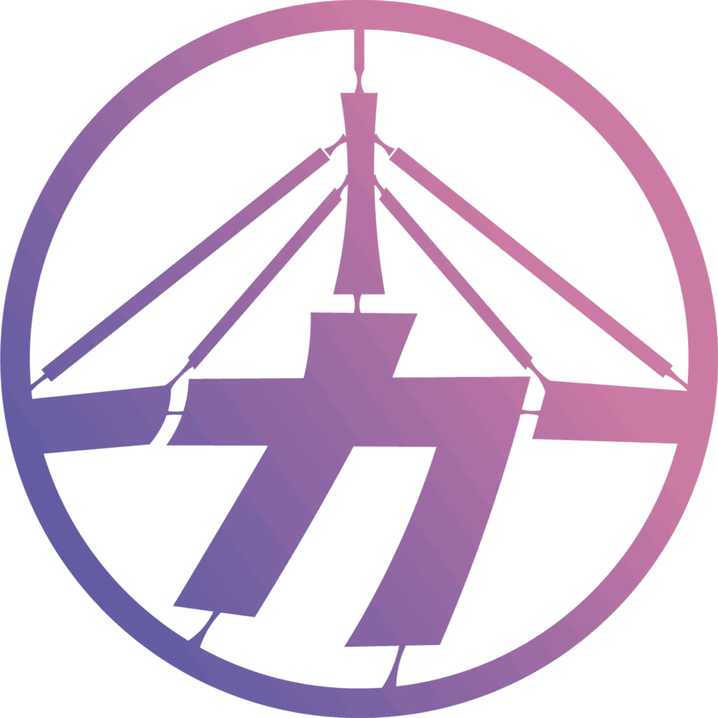 ロゴは、ハープ橋の構造をモチーフにした直線的なラインと、